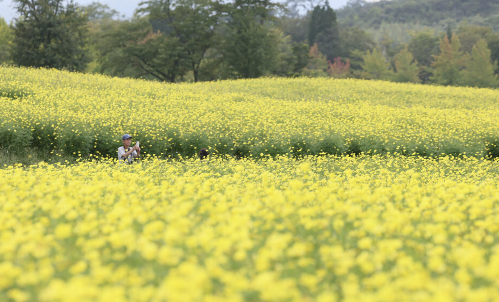 과거 핑크, 빨강, 흰색 코스모스가 피어 있던 공원 남쪽 지역의 꽃밭 약 2·8헥타르에서 멕시코 원산으로 더위와 질병에 강한 품종 레몬 브라이트가 약 180만 그루가 피어 있다.